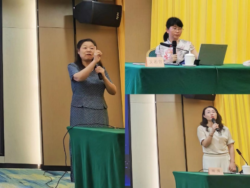 ▲李鹏老师作讲座、李晓梅和欧阳晴老师展示课例