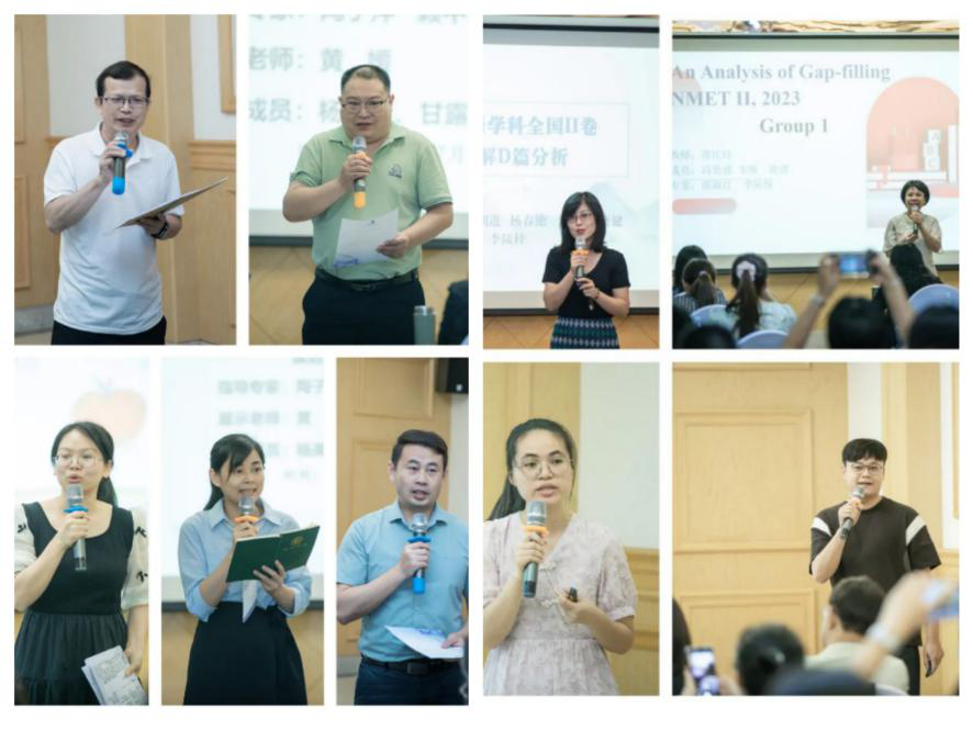 高中英语学科新教材使用培训分为人教版和外研版两场。其中专家作主题讲座《新课程、新教材、新高考》《新课标背景下的新高考命题变化、趋势分析与备考策略》《高三备考第一轮、第二轮的复习设计与实施》《‘三新'背景下高考英语阅读与写作分析及应对》,并对新课标下如何开展新高考备考工作进行了细致的指导。区内参培教师针对新课标Ⅱ卷各类题型或者高考第一轮、第二轮的复习课进行分组研题、磨课,在专家指导下升华了认知,在交流互鉴中碰撞出智慧的思维花火。