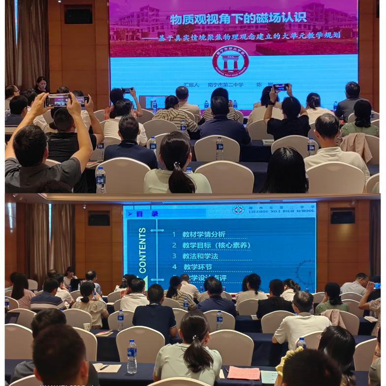高中物理学科新教材使用培训分为人教版和教科社两场,全区共有126名骨干教师、教研员参加培训。在培训中区外专家就教材解读、复习课教学设计、高考备考策略等等主题作讲座,同时围绕教材的重难点课时开展6节说播课展示。参培教师在专家指导下分组磨课,各设区市派出代表展示了14节磨课成果。本次培训基于高中物理知识结构线索和学生认知发展特性开展,从物理学科核心素养培养的角度规划新教材整体教学目标。基于注重学生物理观念形成、物理规律获得、关键能力培养的过程研究,参培教师通过设计教学任务,为落实立德树人根本任务及核心素养理念献计献策,为广西新课程改革贡献力量。