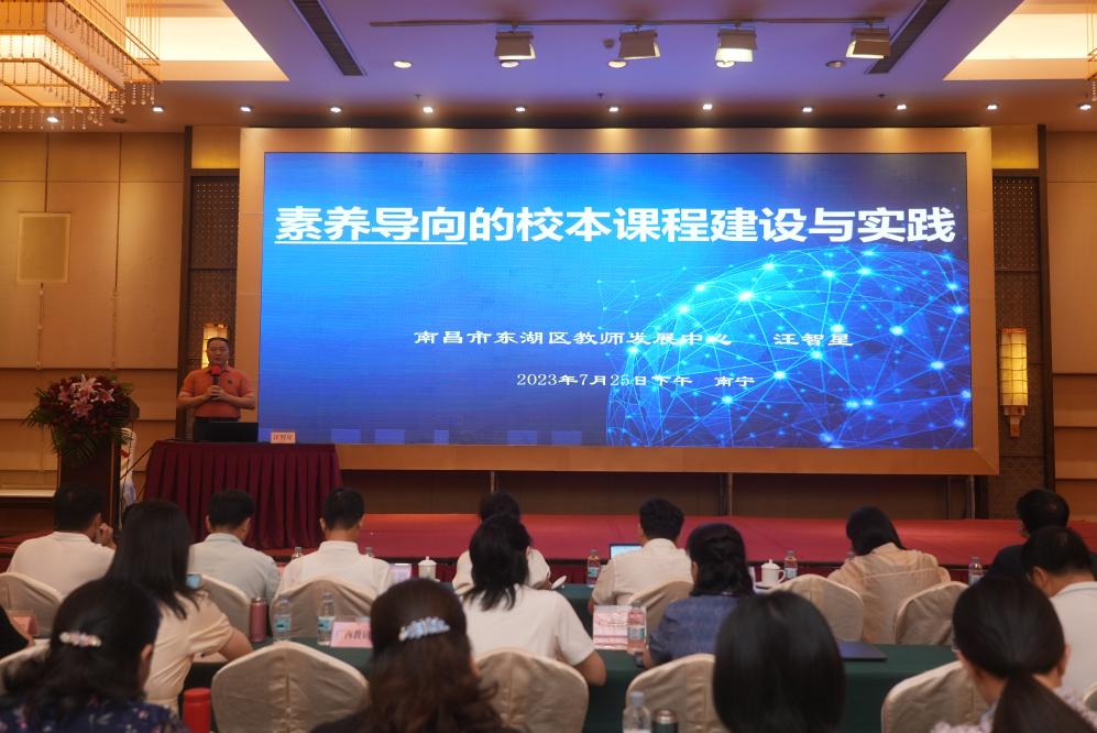 南昌市东湖区教师发展中心主任汪智星教授结合南昌市城北学校二十四节气校本课程建设与实践的具体例子,分享了核心素养导向的校本课程实践与探索的意义价值及可行路径,重点从区域、学校、学科组、教师、学生等不同层面分析了推进区域课程改革经验做法。