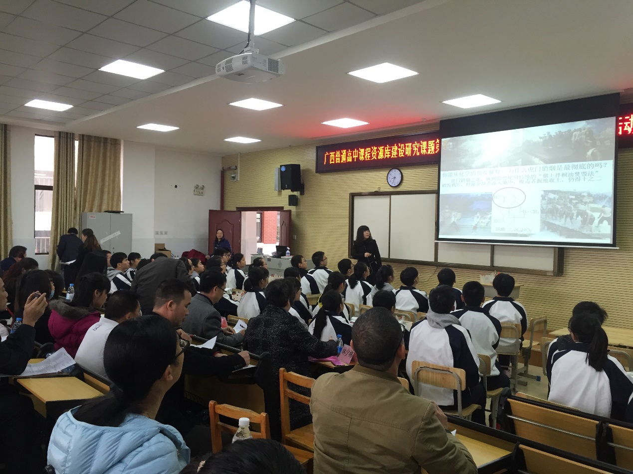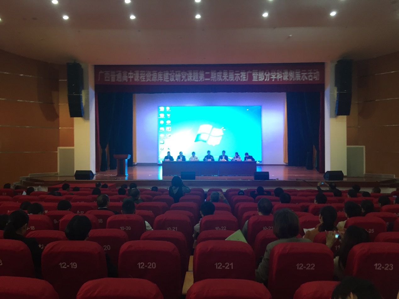 由广西教育研究院主办的“广西普通高中课程资源库建设研究”成果推广暨学科课例展示活动于2016年12月9日、16日分别在百色市高级中学、钦州市第二中学举行。来自全区14个市约1300名高中校长、教师代表以及高校、教研部门的相关专家参与了此次研究成果展示活动。