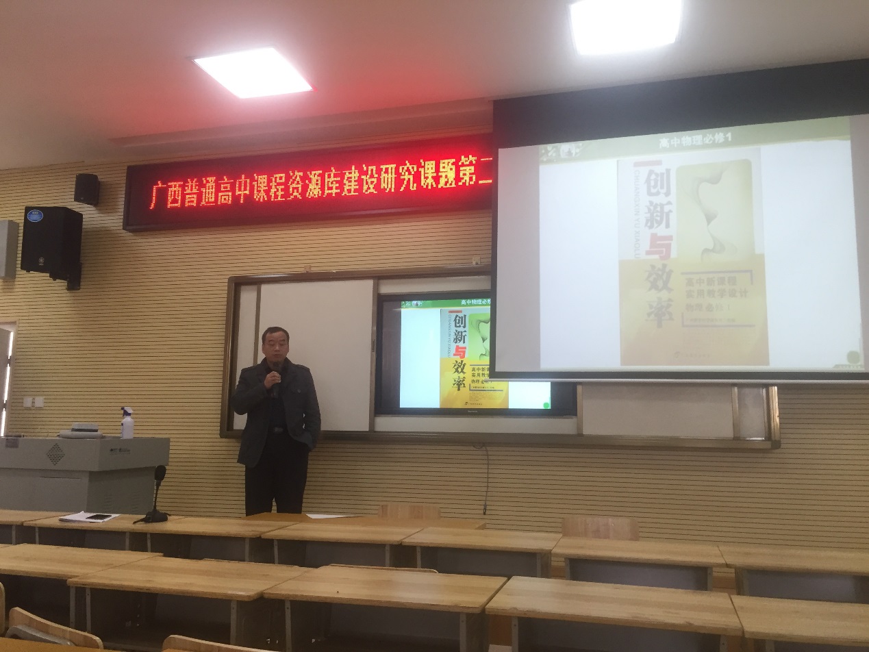 《广西普通高中课程资源库建设研究》课题于2012年启动,经过三年多的研究,在有关专家及广大一线教学名师的共同努力下,目前已经完成高中语文、数学、英语、物理、化学、生物学科的一、二期课程资源研发工作,其中一期成果已经由出版社正式出版,并免费配送到全区所有高中,为教师提供了优质的教学资源,二期成果正在出版中。《广西普通高中课程资源库建设研究》对推动我区的教育科研水平、促进我区优质资源的共建共享以及基础教育均衡发展有着积极而深远的影响。