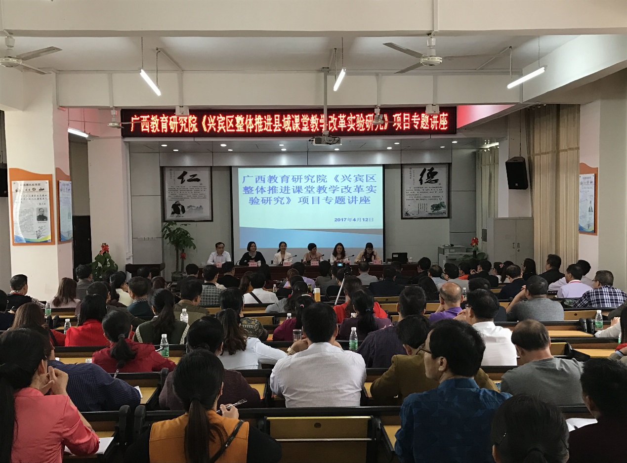 《广西整体推进县域课堂教学改革实验研究》项目是我院“十二五”规划重点课题,于2013年立项,分别由田阳县、桂平市、兴宾区作为试点县开展研究,旨在实现以研促教、教研相长、整县推进、共同提高的目标,促进我区教师的专业化成长、提升我区的教学水平和教育质量。据统计,此次活动共聘请了来自南宁、柳州、桂林、玉林、贵港等地的24位专家进行教学和科研指导,吸引了3个实验区约2500多名教师和教研员参加,在当地引起了极大反响,受到了一线老师们的一致好评。