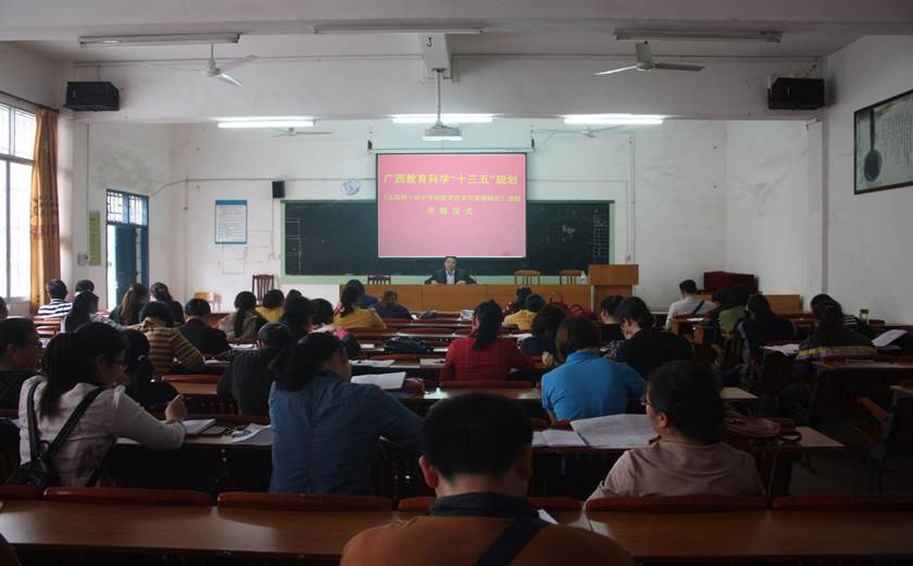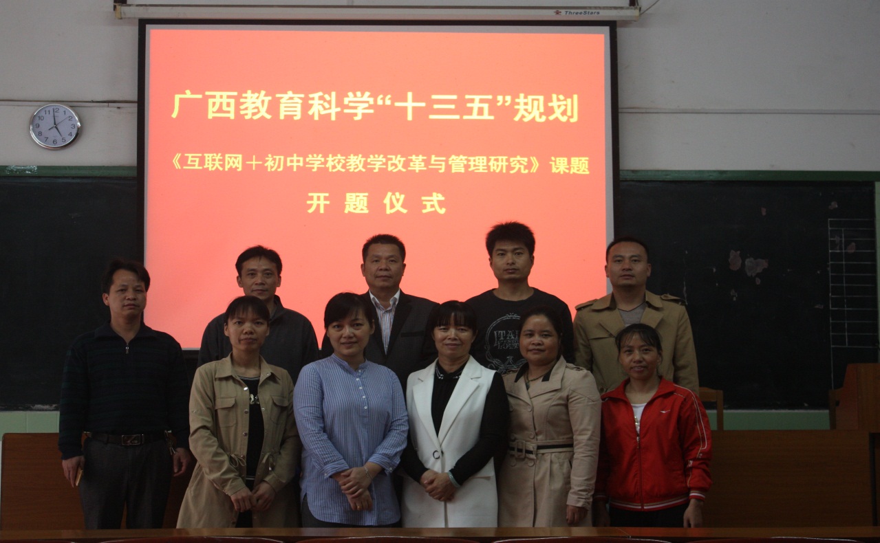 2017年3月27日下午,宜州市第二中学举行“互联网+初中学校教学改革与管理研究”课题开题仪式,学校校长李胜忠陈述课题开题报告,并介绍课题组成员有关情况,宣读立项通知。