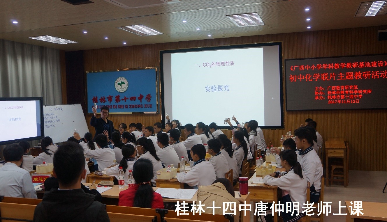 本次在桂林市第十四中学开展的桂林片区初中化学“联片主题教研”活动,为我区初中化学教师提供了一个广阔的学习交流平台,有利于教师交流切磋教学技艺、提高课堂教学效率,有利于深化初中化学课程改革;同时网路的覆盖,提高了桂林片区乃至全区初中化学教师的参与度和教科研水平,对进一步促进片区内老师之间的交流和相互学习,对促进初中化学教师专业成长,对提高片区的基础教育质量,都具有重要的意义。