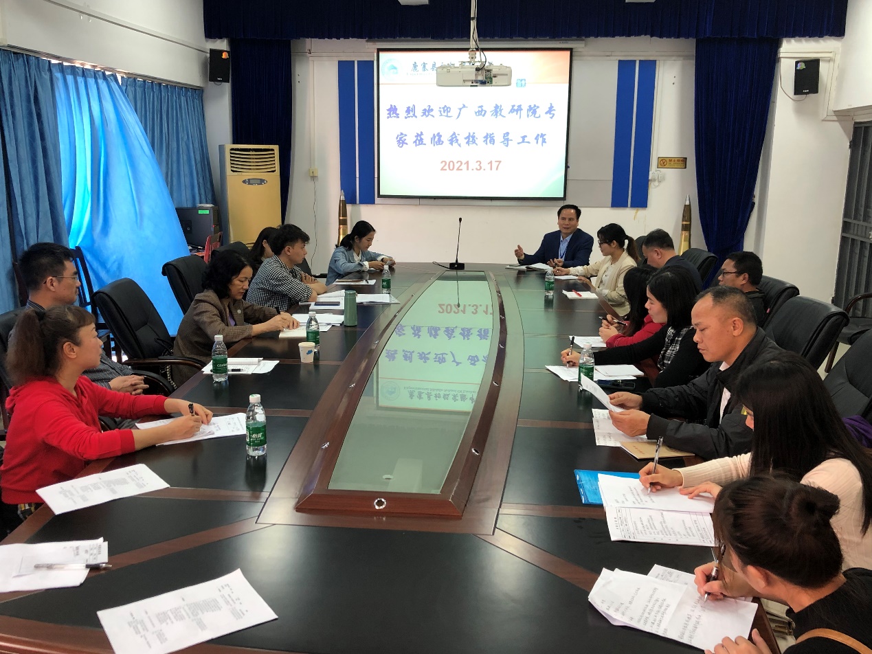 在柳州市城中区调研暨教学视导座谈会上,黄艳兰副院长赞扬城中区领导站位高、教育基础好、团队力量强、创新意识强、科研成果丰,肯定了城中区参与“国家义务教育质量监测”结果应用的积极性,并建议城中区根据国家义务教育质量监测工作要求及监测结果应用的要求,加强学习近年来国家颁发的关于教育评价改革等系列文件,及时深度解读“国家义务教育质量监测”报告,提前运用已有的监测结果改进教育教学,提前做好国家质量监测工作的各项准备工作,及时补齐短板。广西教育研究院部分学科教研员初步反馈城中区调研及教学视导的总体情况。城中区教育局副局长唐乐表示城中区各教育部门会继续重视“国家义务教育质量监测”结果的研读,根据专家团队的建议加强研究改进,不断提升城中区义务教育质量。