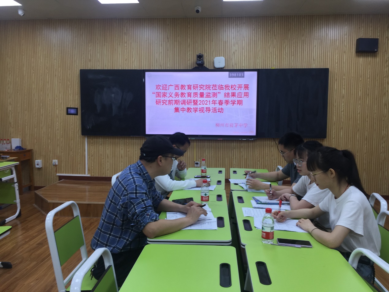 调研组成员与鹿寨县教育局和城中区教育局的局领导及相关学校管理人员就义务教育质量监测结果应用和义务教育质量提升等话题进行深入交流。在教学视导中,各学科专家认真观察学校相应学科的课堂教学,课后与授课老师、听课老师和学生进行交流,从课堂设计、学段备课、学科教研等不同层面提出教学改进意见。