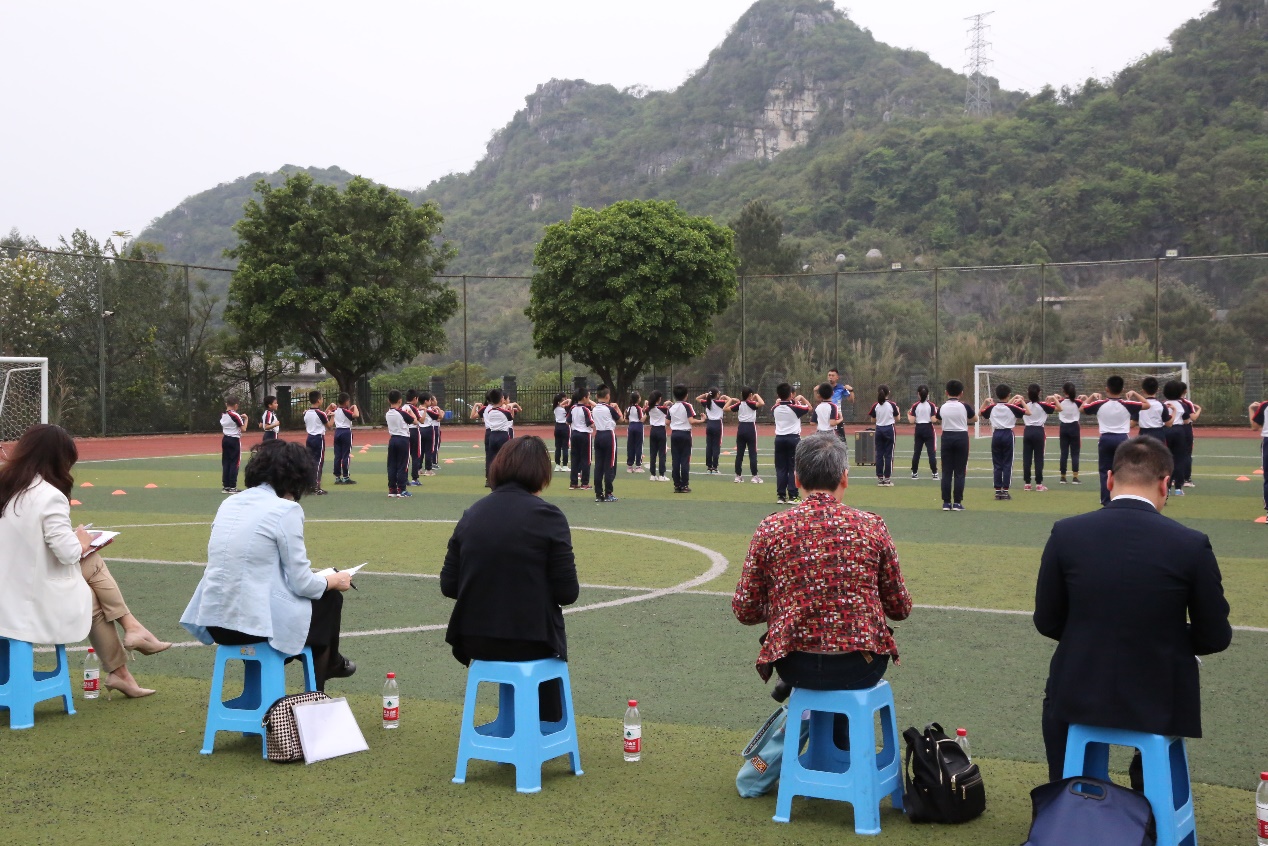 黄艳兰副院长和体育学科教研员林少棉、黄健在公园路小学听课