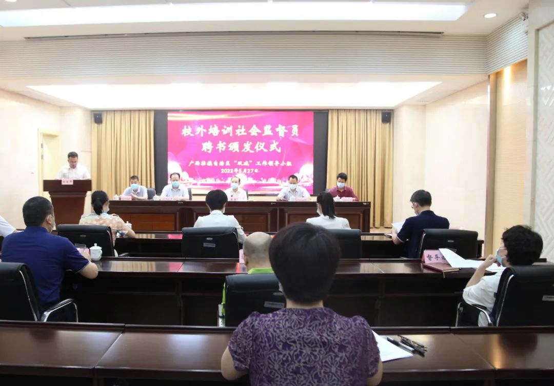 为广泛发动社会各界积极参与校外培训治理,及时发现和解决各地出现的共性困难和问题,推进群策群力抓治理,进一步加强校外培训监管,5月27日上午,自治区教育厅举行仪式,聘请谢小玲等70人担任自治区第一届校外培训社会监督员。