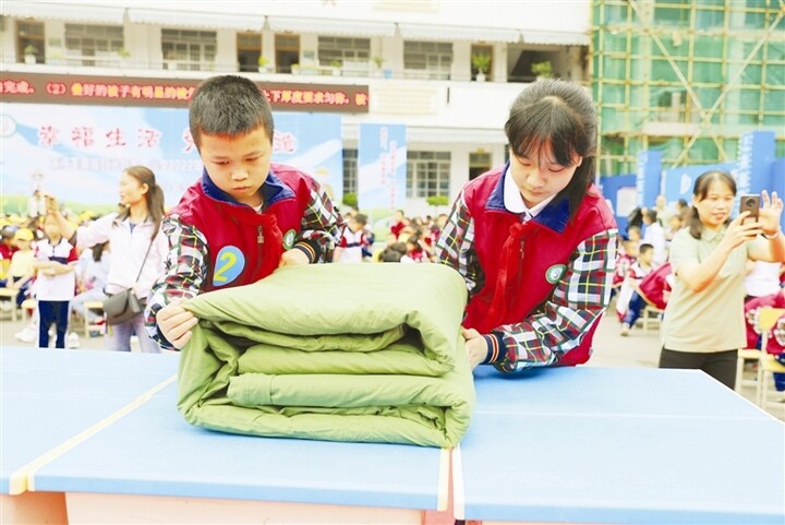 5月12日,河池市环江毛南族自治县第一小学开展以“幸福生活,劳动创造”为主题的首届劳动技能比赛。比赛从生活的小事入手,让劳动课程走进学生心灵,融入学生生活。