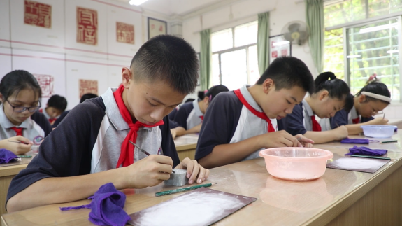 她叫何苗,是柳州市第四十六中学学生,是一位小小“篆刻家”。在学校的篆刻教室里,那力透石面的金石艺术让她深深着迷。