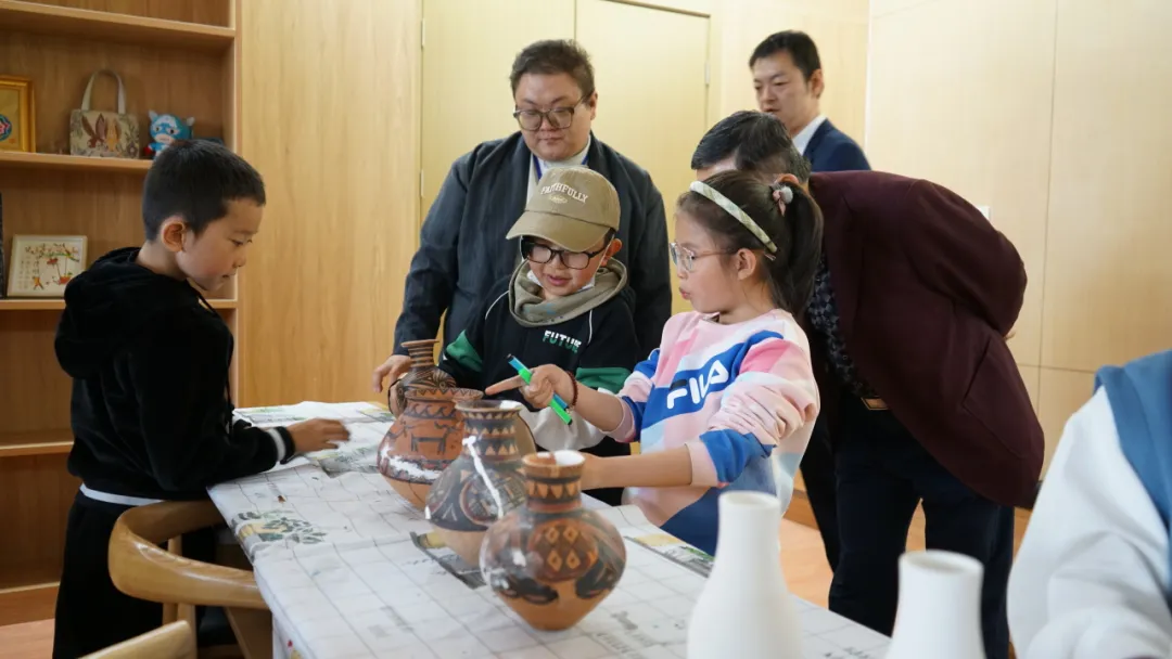 ▲少年儿童在青海省博物馆参与“线以问陶”美育课程活动,体验绘制彩陶纹饰。青海省博物馆供图